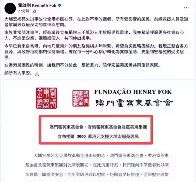 現在霍家正整合各方資源,與相關部門保持聯絡,確保每一分善心都能轉化為實際援助,支援到宏福苑的受災居民。