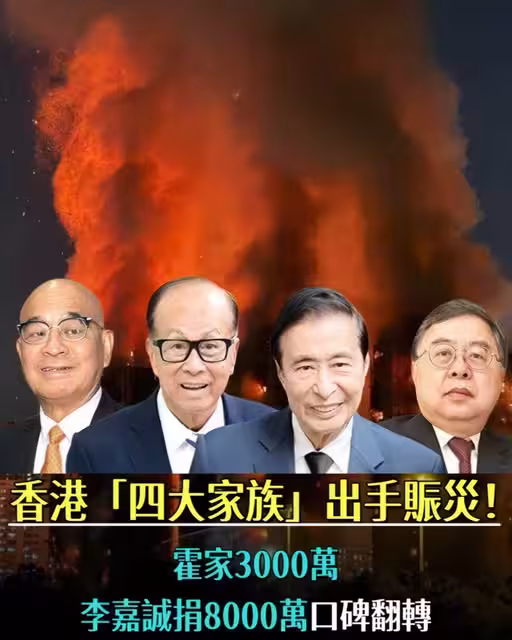 11月26日下午,香港大埔宏福苑的一聲火情警報,打破了往日的平靜。火災發生後,香港社會各界也是緊急行動,其中「四大家族」以及霍家的賑災舉措,格外牽動人心。