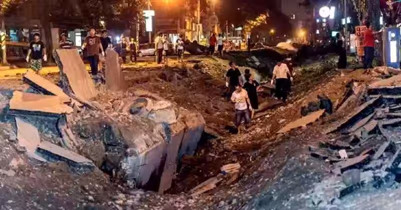 但在11點35分時斷送後15分鐘,竟引發爆炸,導致凱旋三路、二聖路坍塌。