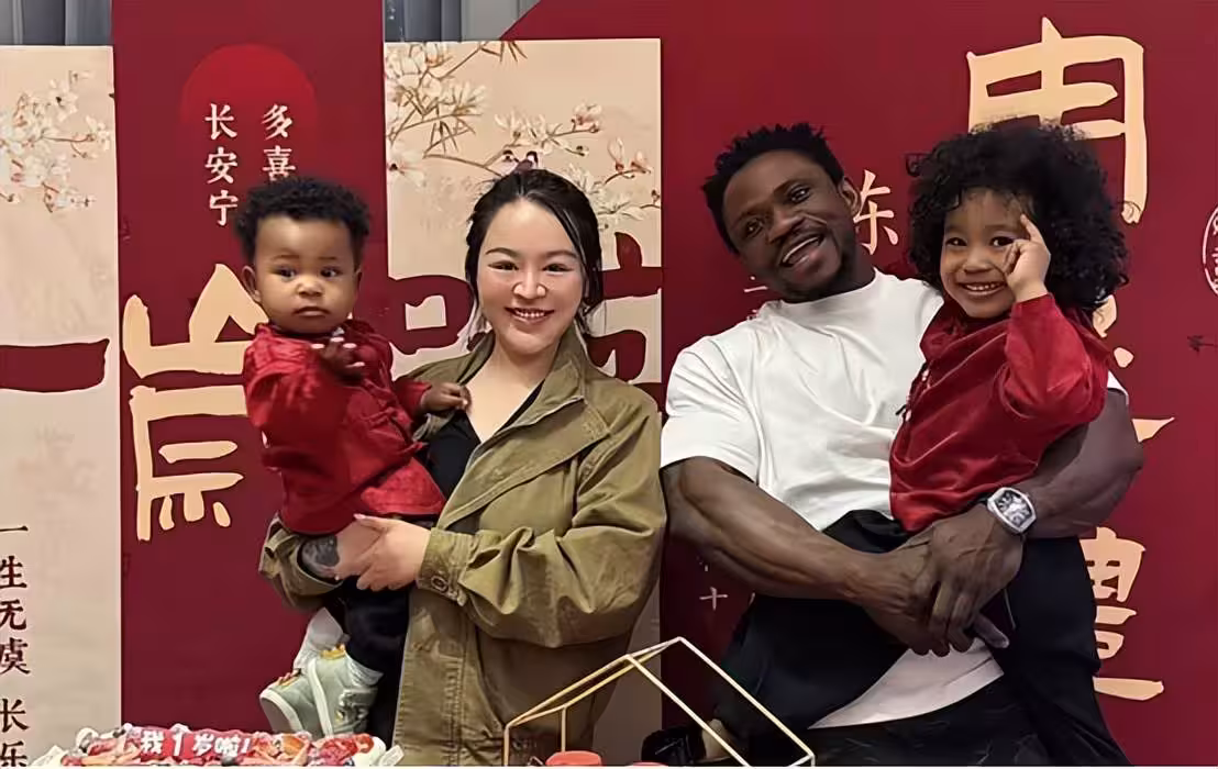 還沒斷奶的小兒子留在中國,她帶著大兒子「Samson」,跟著肉哥一起坐飛機去了加納。