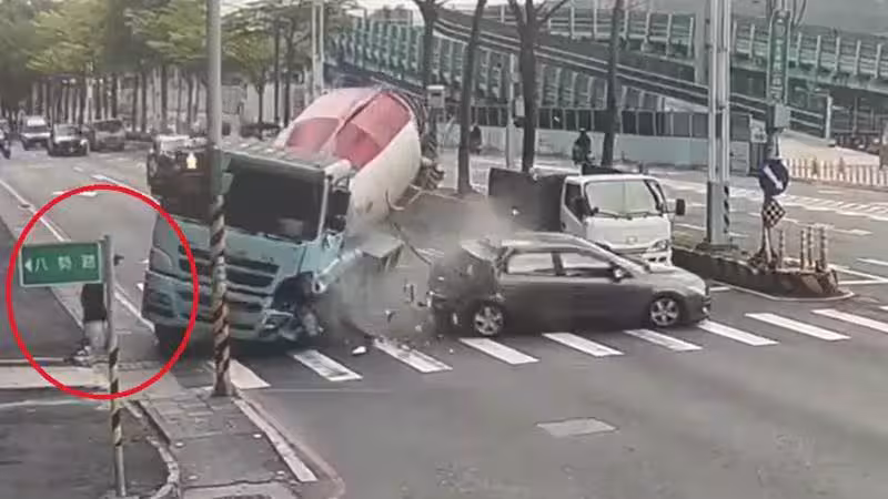 好險閃得快!淡水水泥車失控釀禍 她差一步見閻王