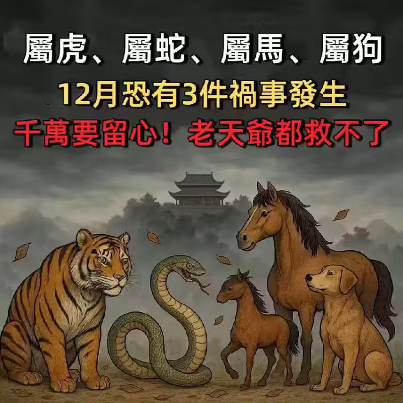 「 屬虎、屬蛇、屬馬、屬狗」 12月恐有3件禍事發生, 千萬要留心