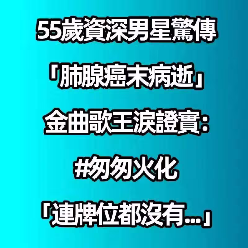 55歲資深男星驚傳「肺腺癌末病逝」! 金曲歌王淚證實:「匆匆火化連牌位都沒有............」