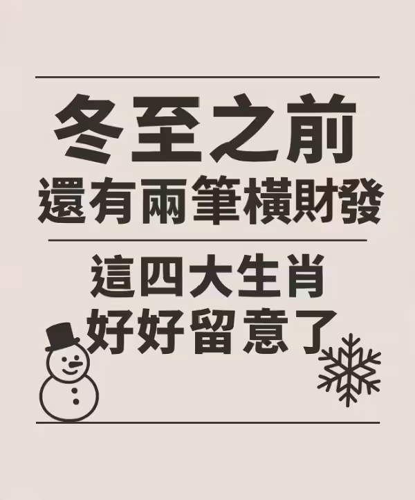 冬至之前, 還有兩筆橫財要發, 這四大生肖好好留意了