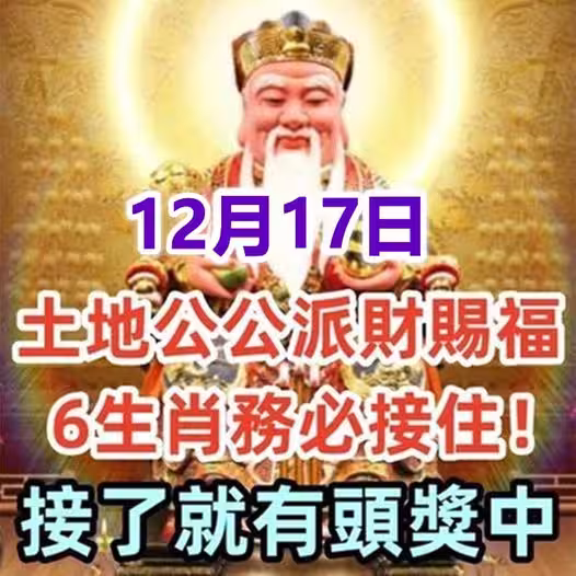 12月17日:土地公公派財賜福,6生肖務必接住! 接了就有頭獎中!