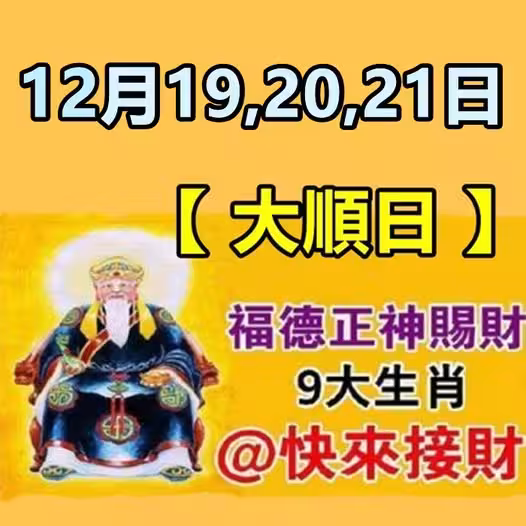 12月19,20,21大順日, 福德正神賜財,九大生肖請接財!