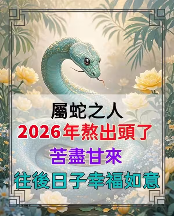 屬蛇之人:2026年熬出頭了,苦盡甘來,往後日子幸福如意