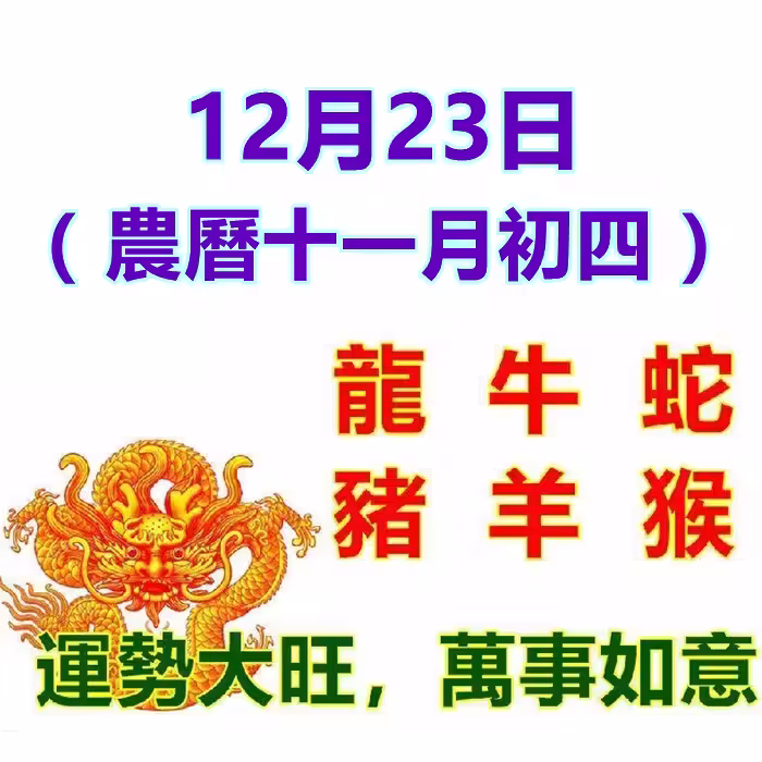 12月23日(農曆十一月初四)生肖運勢_龍、牛、蛇大吉