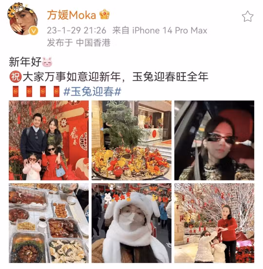方媛春節曬全家福,57歲郭富城頭髮烏黑,倆女兒一個像爸一個像媽_生活_母女倆_毛衣