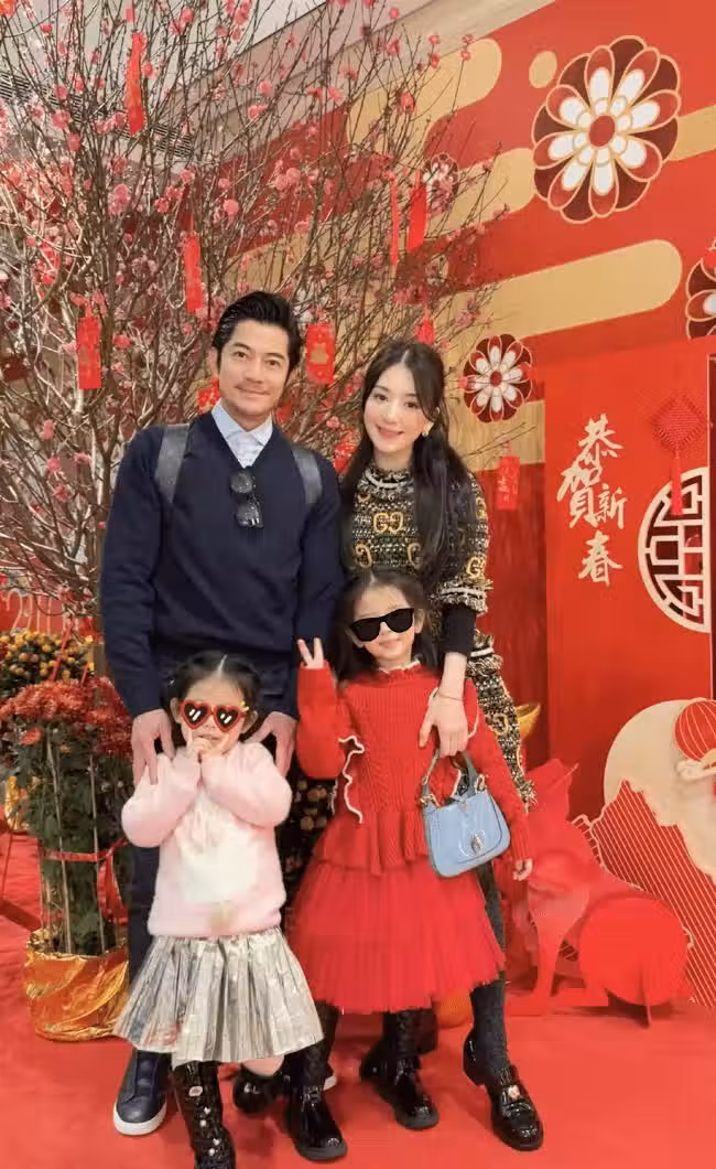 方媛春節曬全家福,57歲郭富城頭髮烏黑,倆女兒一個像爸一個像媽_生活_母女倆_毛衣