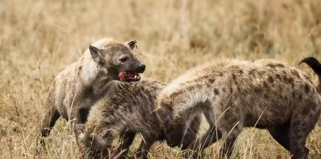 一旦鬣狗捕獲獵物,雄性通常最後進食。雄性也是圍在食物屍體周圍最易受欺負的。