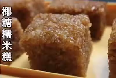 材料:糯米 1 kg(浸隔夜),濃椰漿 300g,椰糖 200g(切碎)