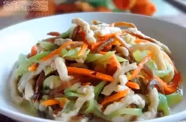 4、再將紅蘿蔔絲和孔明菜一起下鍋翻炒。