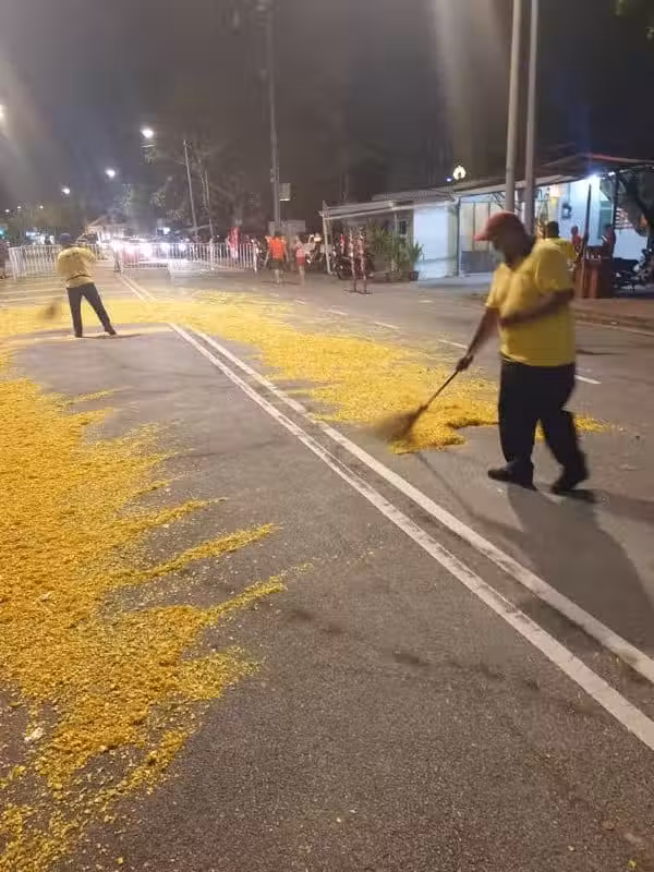 拜天公後…… 清潔工友花9小時 才將鞭炮屑清理乾淨