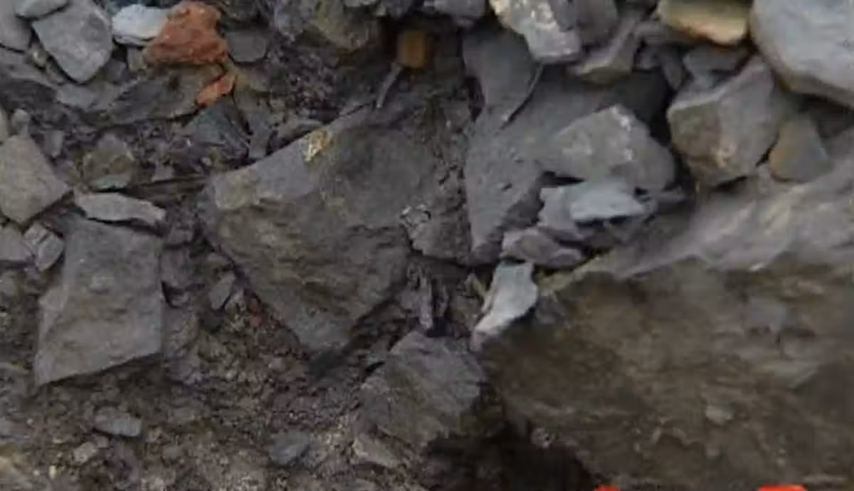 原本被遺棄在山上的礦渣也隨著雨水不斷地流失,從礦場滑落到山下,慢慢堆積在菜地和住戶人家周圍。