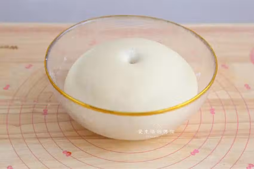 8,叉燒餡做好之後,面也發酵好了,戳一個洞下去,不塌餡不反彈,把面取出來,大力出奇蹟,揉5-8分鐘,把裡面的氣體排光,做出來的包子光滑又好吃。