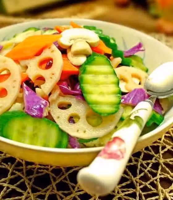 胡蘿蔔,小黃瓜,紫包菜,花菜,蓮藕,蘑菇,新鮮檸檬,橄欖油,黑胡椒粒,香葉