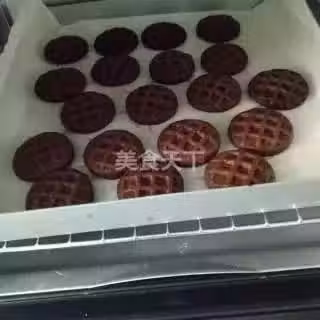 8、用帶有格子狀的東西壓一下,很像華夫餅的外觀。我用的是切薯條的工具里的一部分,正好是格子狀的。