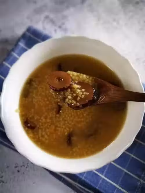 材料:紅棗四五顆 黑糖適量 黃小米60克 水700-1000毫升(根據個人喜好增減)