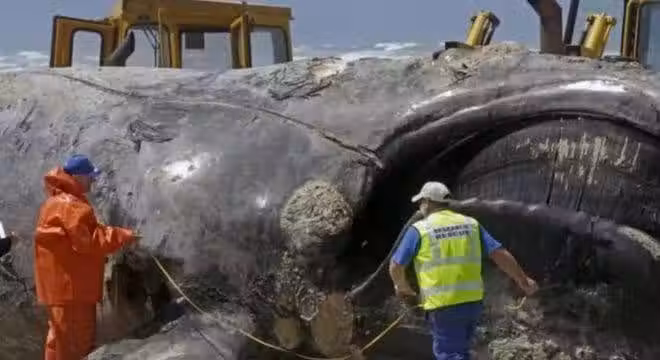 經過工作人員的檢查,在這頭鯨魚嘴裡發現了很多塑料袋,直至死亡它的嘴還是張開的,所以工作人員猜測鯨魚應該是吞食大量塑料袋造成窒息死亡的,人類的污染早已波及到了海洋,這些沒有辦法分解的塑料製品導致海洋生活死亡的案例比比皆是!