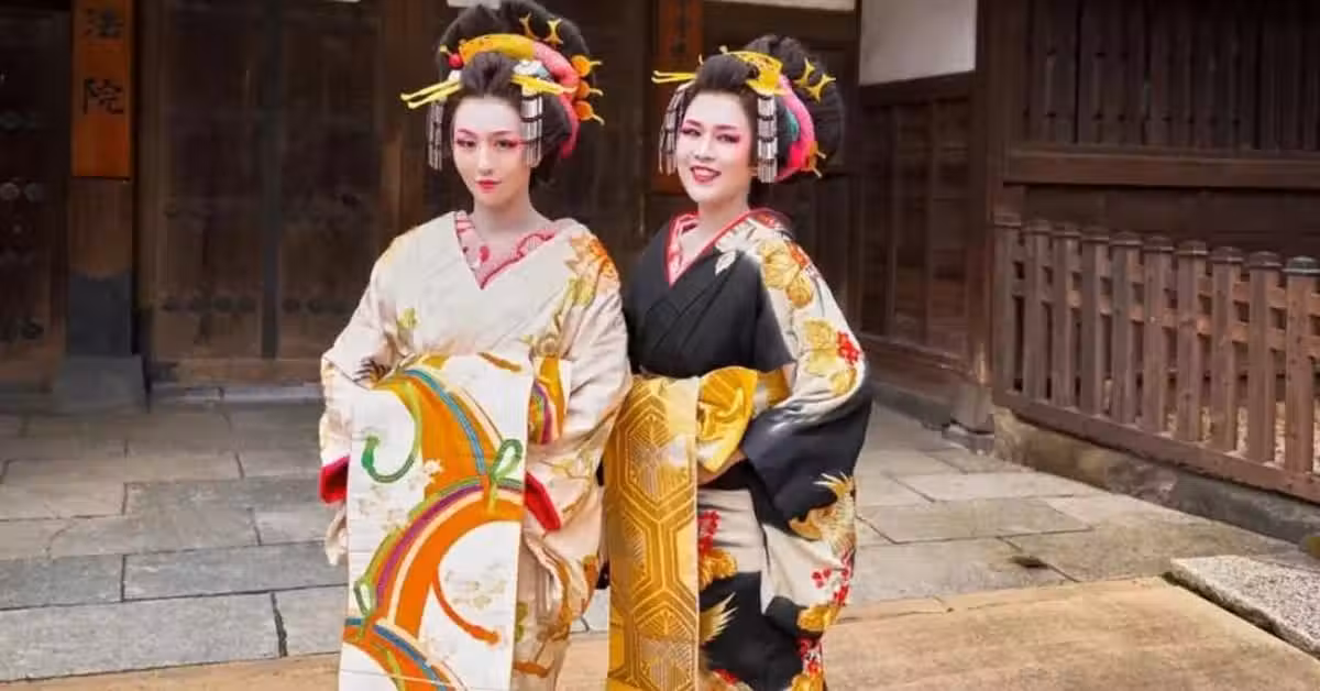 薔薔(左)和好友扮成藝妓上街,吸引超多目光,但裝扮過程中卻讓她氣壞。