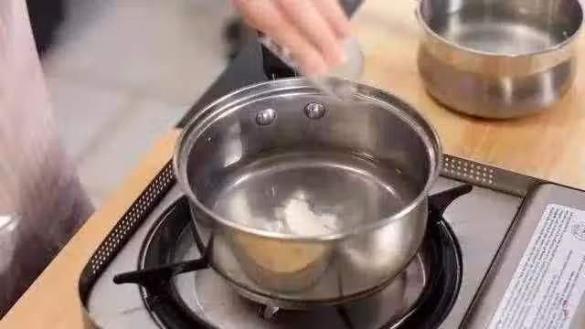 240g椰汁,用從椰子裡新鮮開出來的,或者現在超市裡也有鮮椰汁賣了,不要用椰樹那種~~還沒加熱的時候就放入洋菜粉,攪拌均勻,如果加熱了再加就會結塊