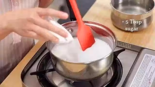 開小火加熱,加入一點鹽,25g細砂糖,240g椰漿,也不是椰樹牌椰汁!是椰漿!做咖喱用的那種,比較稠~