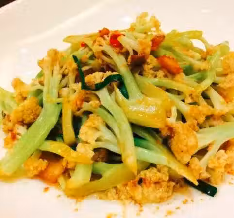 5.倒入菜花,翻炒均勻。