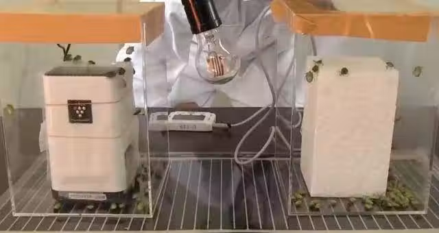 如果椿象遇到了捕食者會怎麼樣呢,只見人們在容器中放入一隻打屁蟲還有一隻蛤蟆,蛤蟆看到打屁蟲的一瞬間就將它吃了進去。