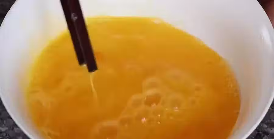 5.起鍋刷油,油熱倒入適量雞蛋液,把它攤平整。有不沾平底鍋會更好,儘量攤薄一點。