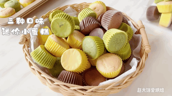 三種口味的迷你小蛋糕,一口一個鬆軟好吃,做法也超級簡單