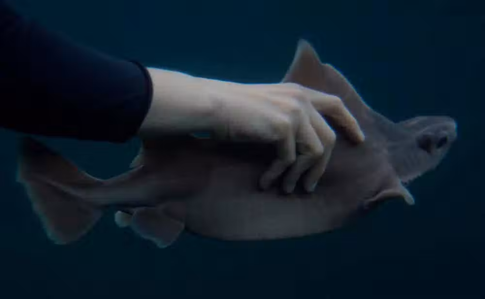 它們是卵胎生的物種,帶有卵黃囊,胚胎會直接在母親體內發育。待到發育得差不多了,它們就會每年生產10到12隻幼崽。