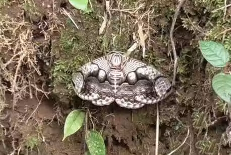 冷靜下來的小伙才看清楚,原來那並不是一條蛇,而是一種胡蝶或者飛蛾,只是因為背上的花紋太像蛇而讓小伙誤會了,於是小伙將這奇怪的東西拍了下來發到網上。