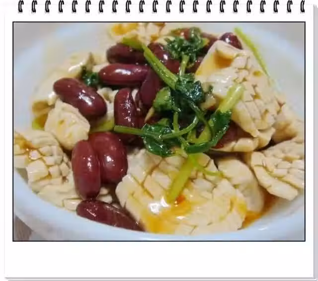原料:蜜豆、凍豆腐、紅辣椒