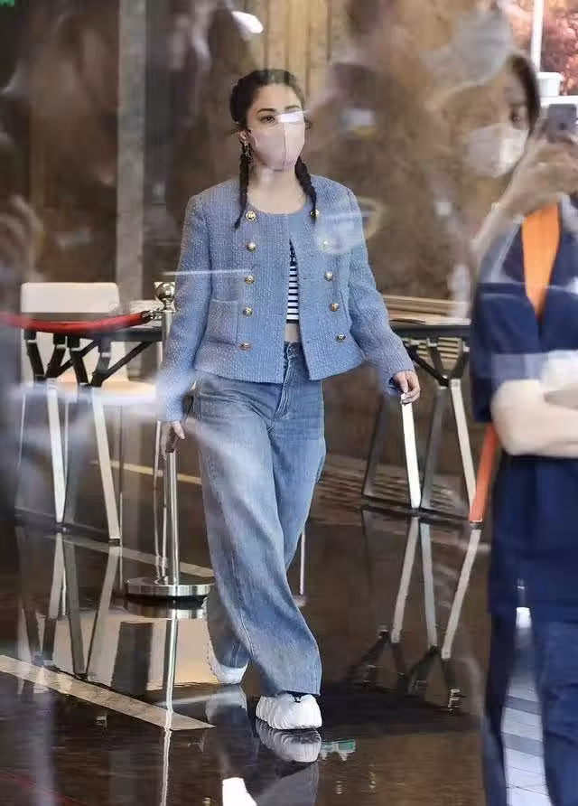 42歲的阿嬌並沒有年齡焦慮,這一點從她選款搭配上就能看得出來,鏡頭中的她身穿拼接撞色款露臍上衣,休閑舒適又極為青春,減齡效果明顯。