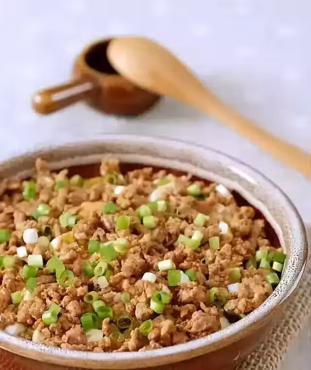 2.肉切末會用攪拌器攪打成肉泥,用勺料酒,少許鹽醃製片刻,十分鐘左右即可。
