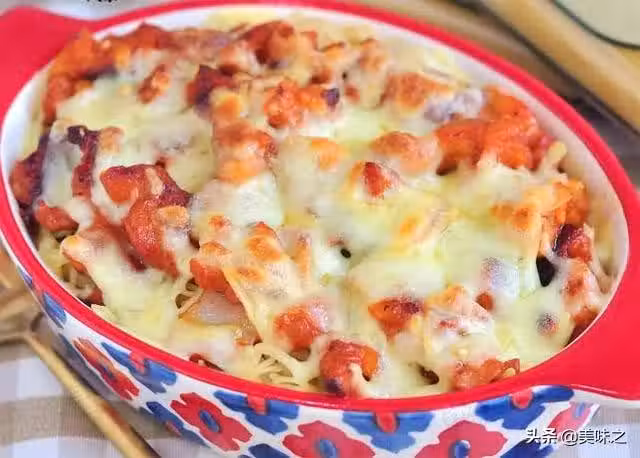 5、把義大利面倒入耐高溫容器中,骨肉相連鋪在表面。