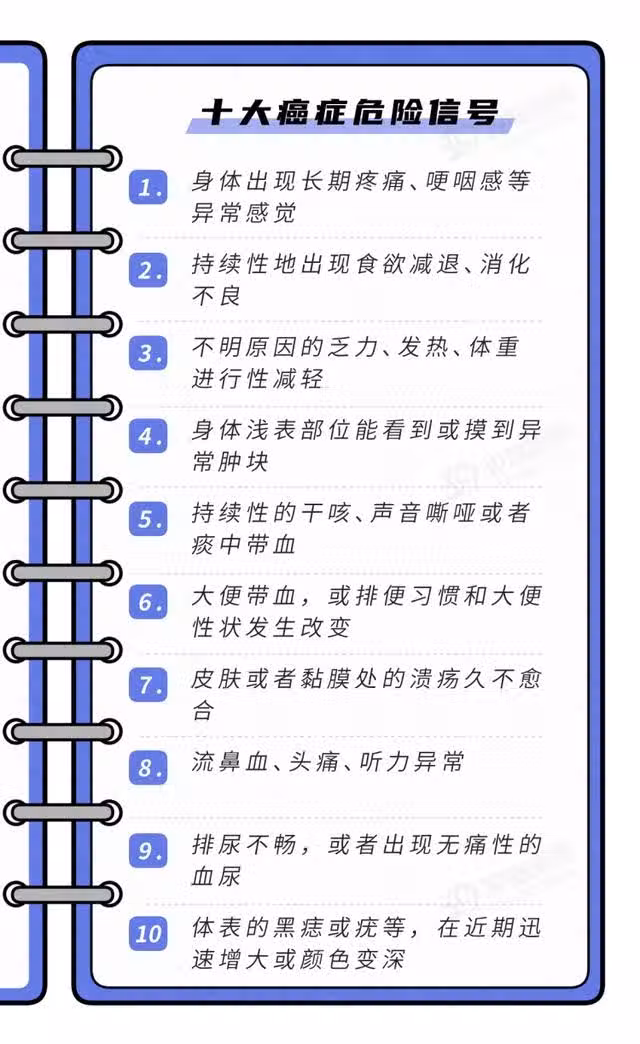 如果你想按癌症種類來看,這裡還有一份《十類癌症的典型症狀》:
