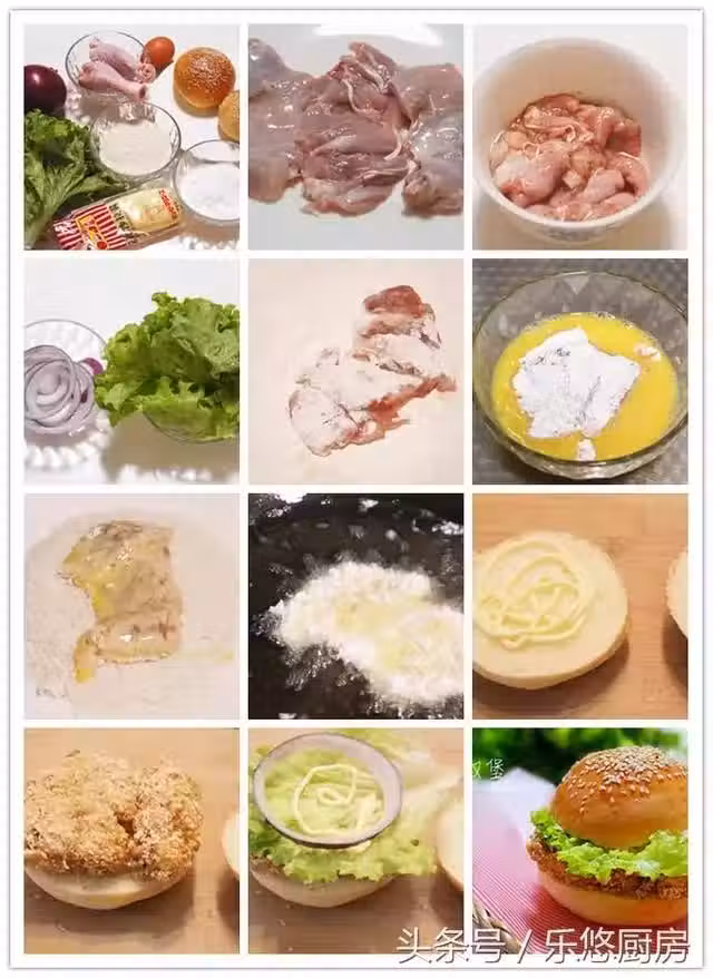 第十步:將炸好的雞腿肉放在麵包上。