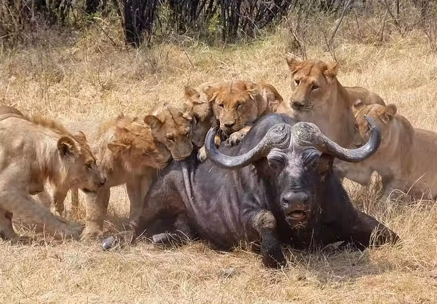 10:團結就是力量,當大家一起反擊的時候,草原之王也要落荒而逃。