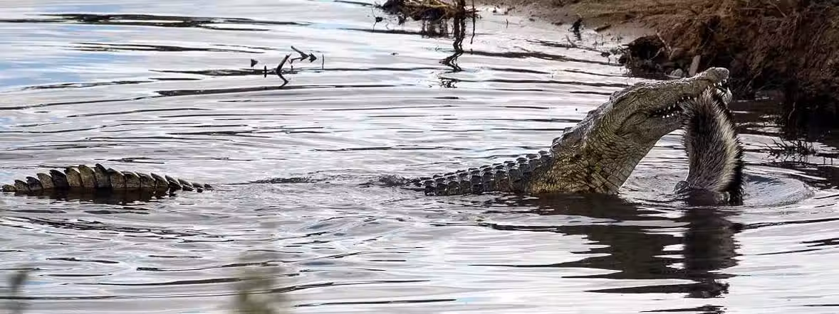 "常在河邊走,哪能不濕鞋",平頭哥河邊被尼祿鱷咬住,東甩西甩成碎片!
