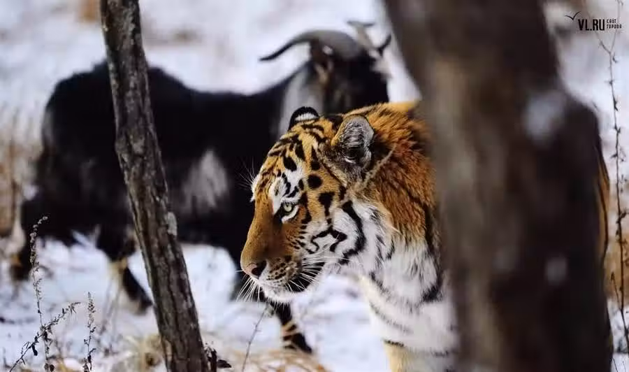 飼養員原本以為,等東北虎阿穆爾足夠饑餓的時候就會把這只山羊吃掉, 但後面發生的事卻更讓人吃驚,也讓這只山羊和這頭東北虎世界聞名。