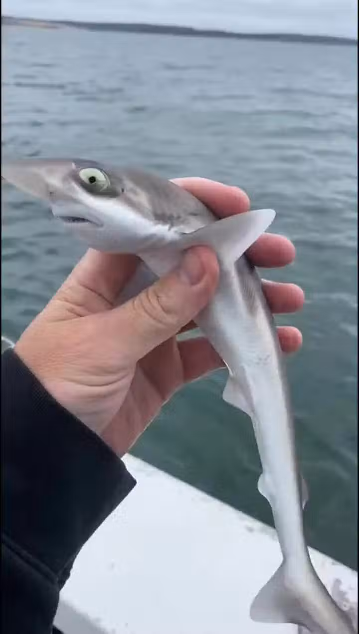 這位外國網友原本是出海釣魚的,結果沒想到上鉤的居然是一條鯊魚寶寶。小鯊魚看起來像是大鯊魚的縮小版,所以很好認,但體型上與成年鯊魚相差千百倍,只有人的手掌大小。