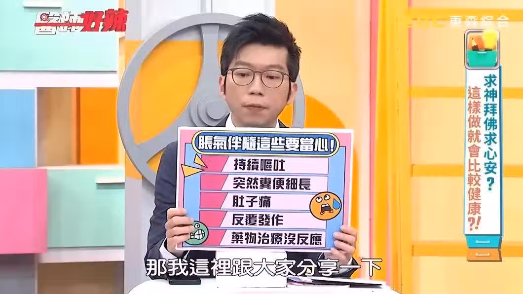 賈蔚提到,過去碰過年輕女病人掛急診,說自己肚子痛又脹,他先懷疑:「是不是腸阻塞?」如果腸子不動了就會導致脹氣,另一個狀況則是,腸子通順但短暫產氣太多,這和所吃的食物、腸道菌種有關。當下,他請病患抽血、照X光,因此暫時禁止進食,結果一轉頭,看到病人在喝可樂,他直接問:「怎麼喝可樂呢?」