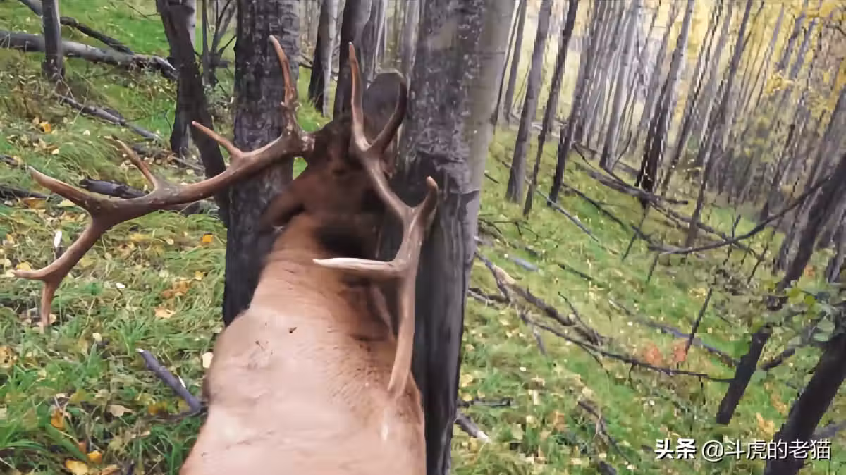 獵人上山打獵,看見揪心的一幕!麋鹿被兩棵樹活活卡死_鹿角_時候_頭角