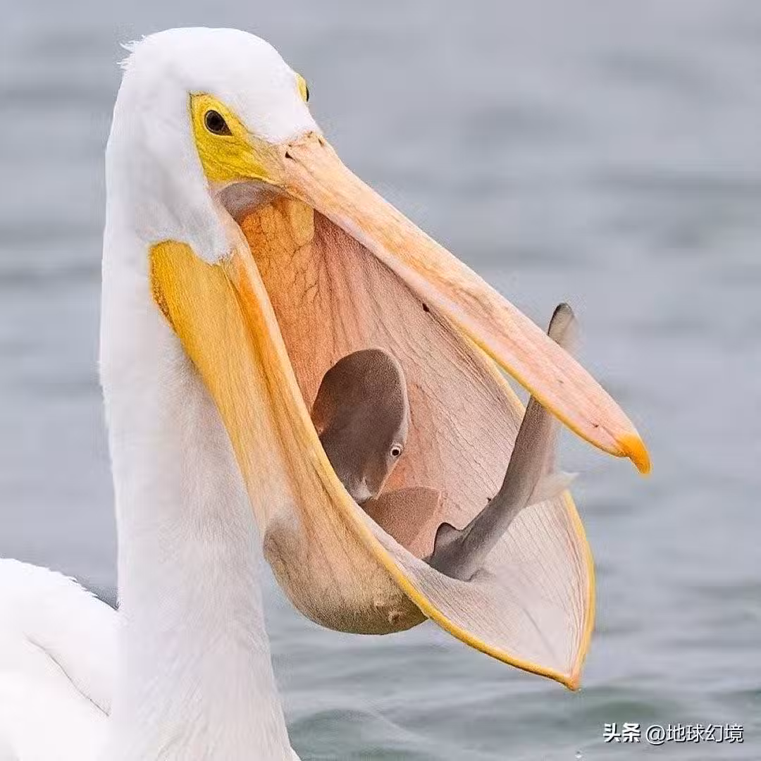 你敢想像嗎?鵜鶘大嘴一張,居然撈到了一條鯊魚,鵜鶘吃鯊魚,簡直是令人難以置信!