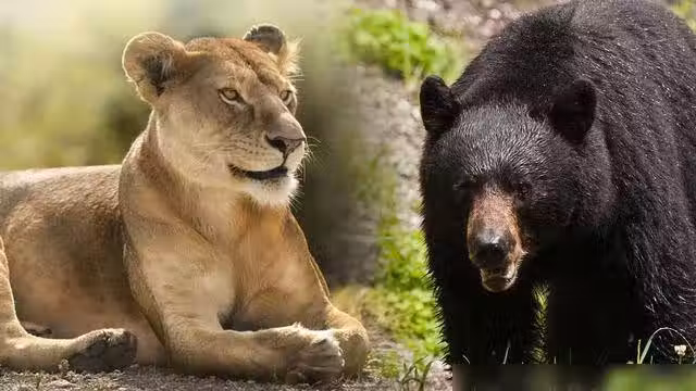 300斤黑熊誤闖獅子領地,獅子大開殺戒,場面太激烈了