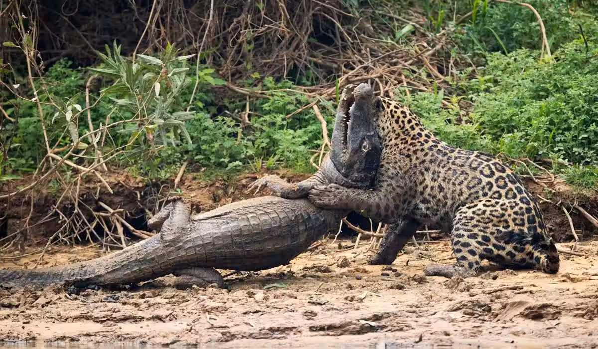 美洲虎還有另外一個為人稱道的事蹟則是經常會捕殺一些鱷魚當做自己的「晚餐」。
