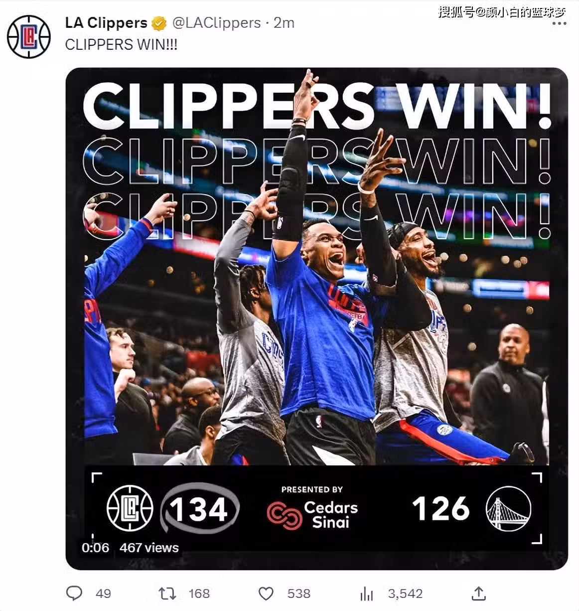 快船134-126擊敗勇士豪取4連勝,這場比賽之後快船重返西部前五,勇士掉至第六,不過勇士與第七的森林狼還有一個勝場差。從開場就是快船壓制勇士,不管庫里多麼爆炸快船都有辦法得分,勇士此役是輸在防守,快船全隊6人上雙,三分命中率47.1%。