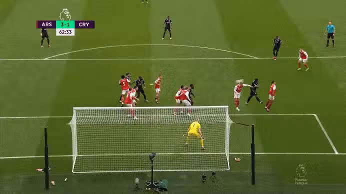 第74分鐘,蒂爾尼禁區左側得球橫傳,禁區中路薩卡側身掃射破門鎖定勝局,薩卡梅開二度!阿森納4-1水晶宮
